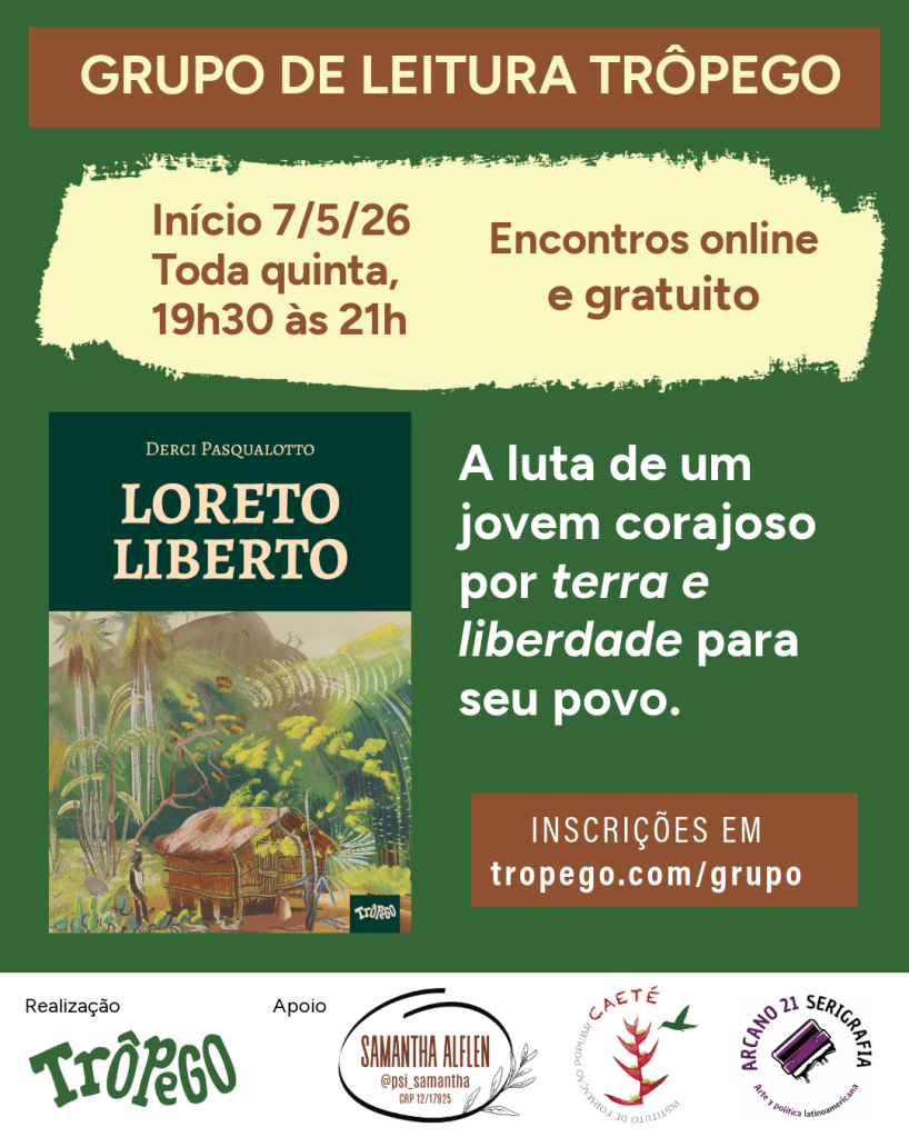 O texto será compartilhado durante o encontro ao vivo, mas você pode apoiar a Editora Trôpego comprando o livro com desconto na loja da Umlivro utilizando o cupom: LORETO15. Ou fazendo um PIX para editoratropego@gmail.com